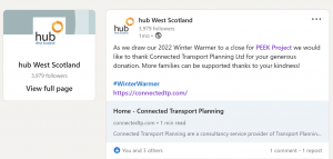 PEEKs winter jackets for school children was perfectly aligned with our ideas. Funds raised went straight to buying winter jackets for those kids in the Glasgow area that were walking to school in uniform only.
