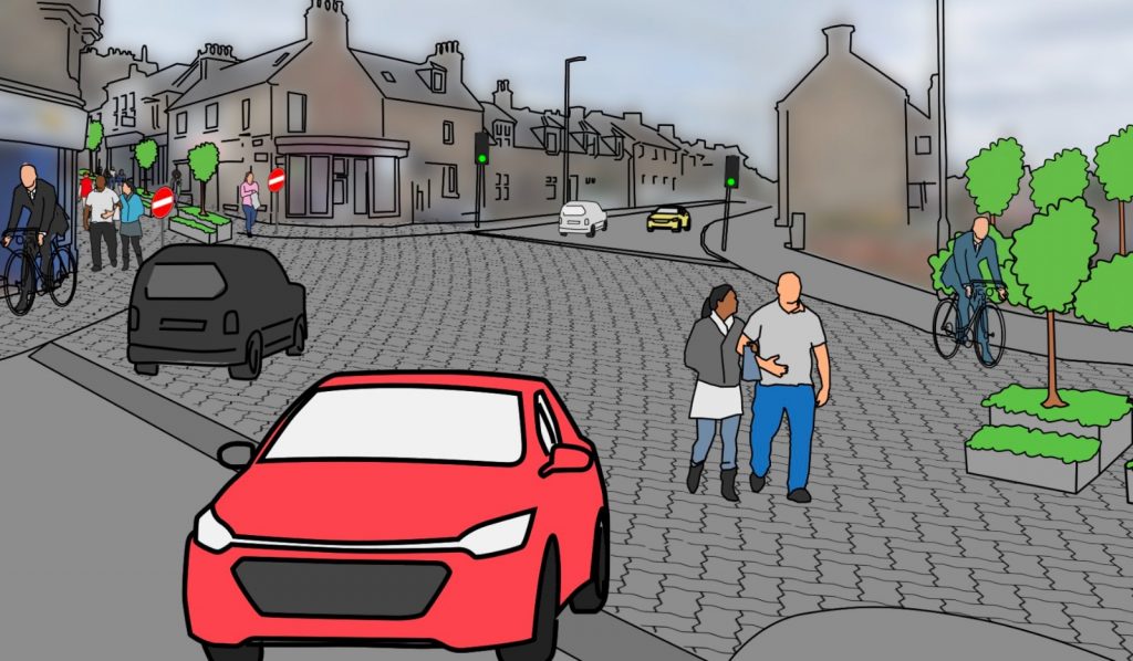 • Development of one-way operation that aligns with the other ambitions of the town’s masterplan and would enable appropriate use of limited corridor width.